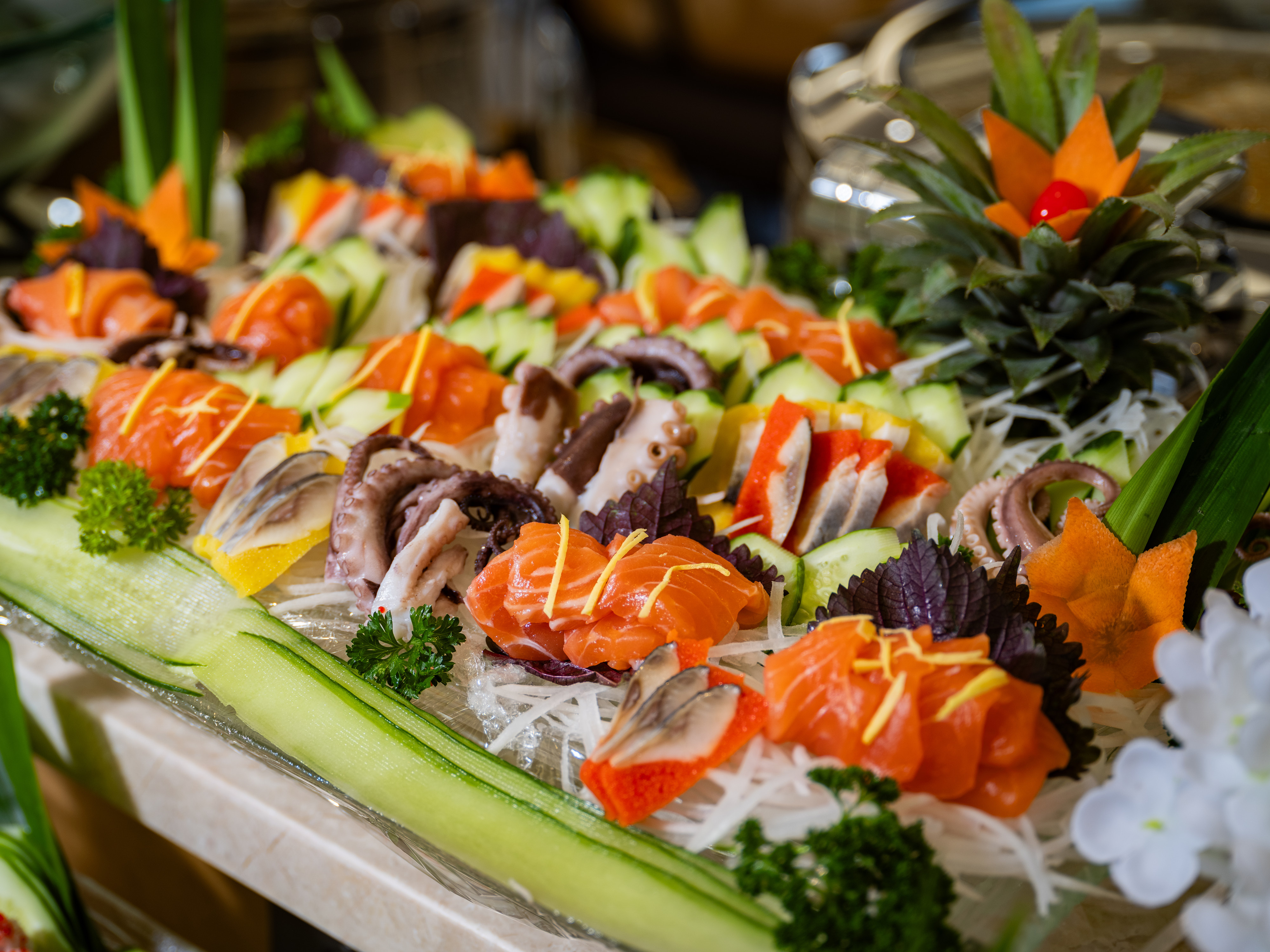 Du thuyền Diana Cruise mang đến thực đơn phong phú và cao cấp, sử dụng nguyên liệu hảo hạng, được chế biến bởi đội ngũ đầu bếp tài hoa đạt tiêu chuẩn 6 sao. Không chỉ phục vụ đa dạng các món Á – Âu và đặc sản Việt Nam, du thuyền còn đặc biệt chú trọng đến nhu cầu riêng của du khách đến từ nhiều nền văn hóa và tôn giáo khác nhau, bao gồm thực đơn chay, Halal (dành cho khách Hồi giáo) và các chế độ ăn theo yêu cầu, đảm bảo mọi du khách đều được phục vụ trọn vẹn và chu đáo.