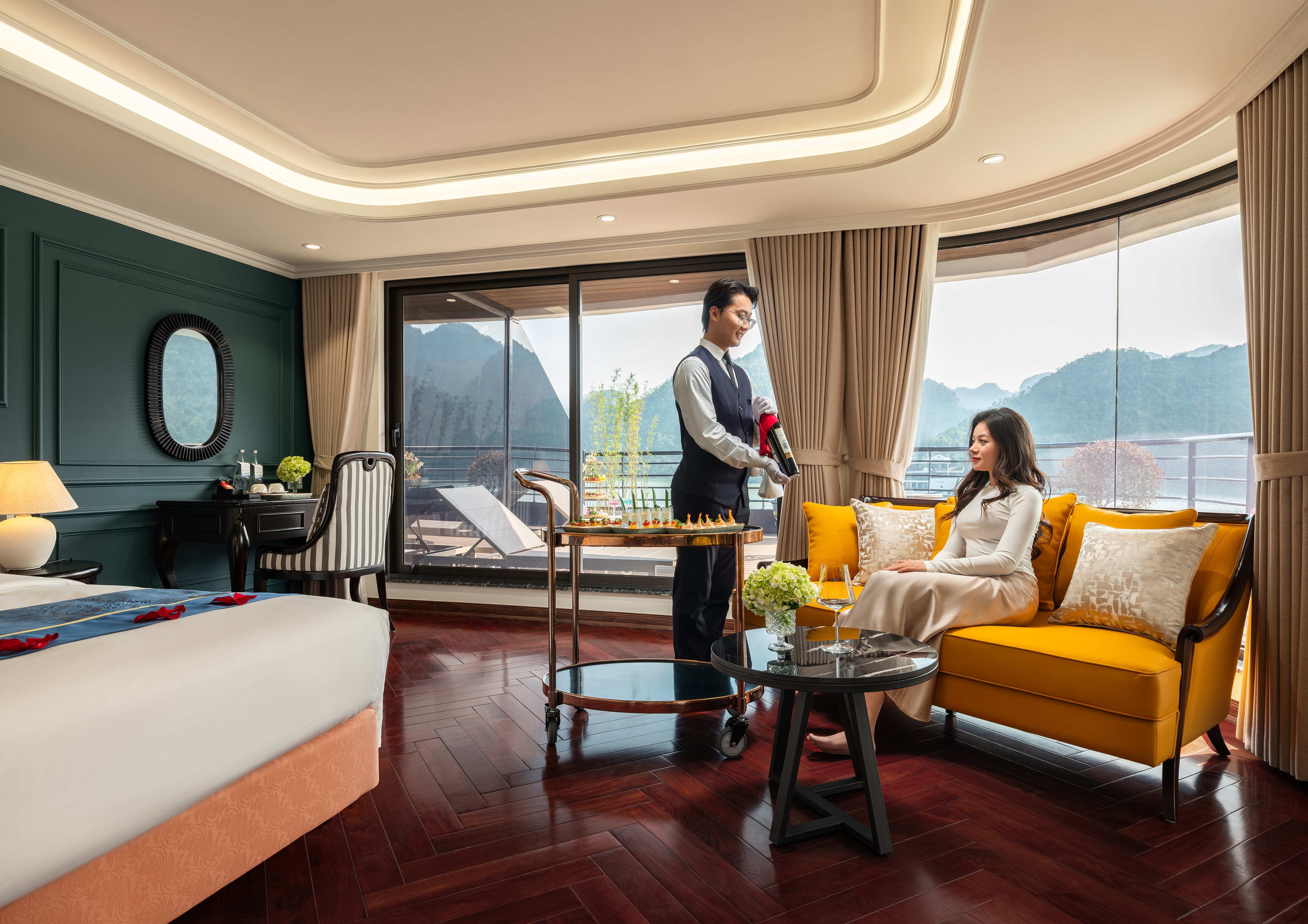 Nằm tại tầng 2 của du thuyền, Executive Balcony có diện tích rộng hơn cùng tầm nhìn thoáng đãng ra vịnh. Đây là lựa chọn phù hợp cho du khách mong muốn không gian thoải mái hơn và view đẹp hơn so với các hạng tiêu chuẩn.