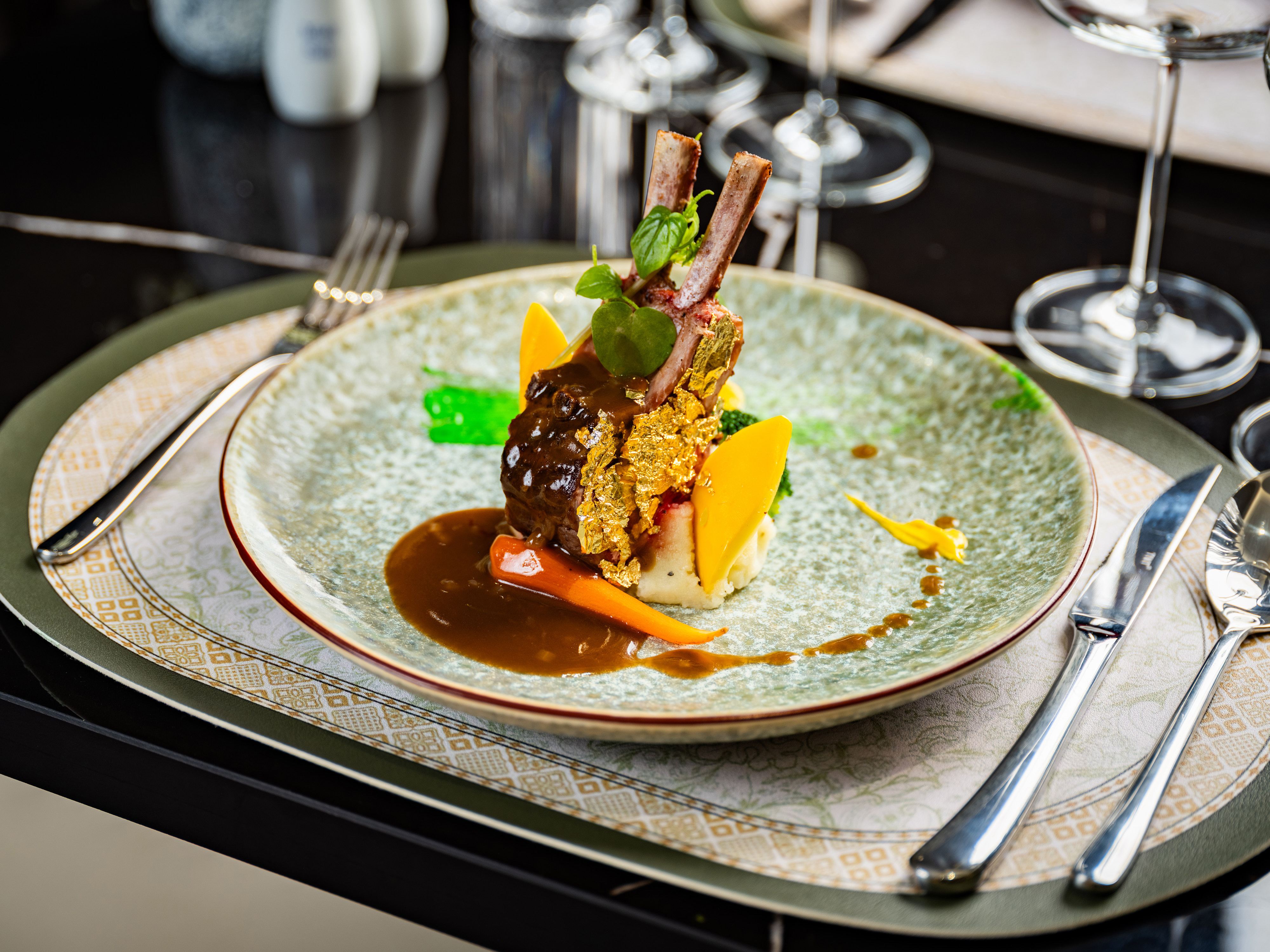 Nhà hàng sang trọng rộng 350m², có khả năng phục vụ lên đến 300 thực khách cùng lúc. Tại đây, du khách sẽ được thưởng thức tinh hoa ẩm thực Á – Âu trong không gian đẳng cấp, dưới bàn tay chế biến của đội ngũ đầu bếp tiêu chuẩn 6 sao, sử dụng nguyên liệu tươi ngon và cao cấp.