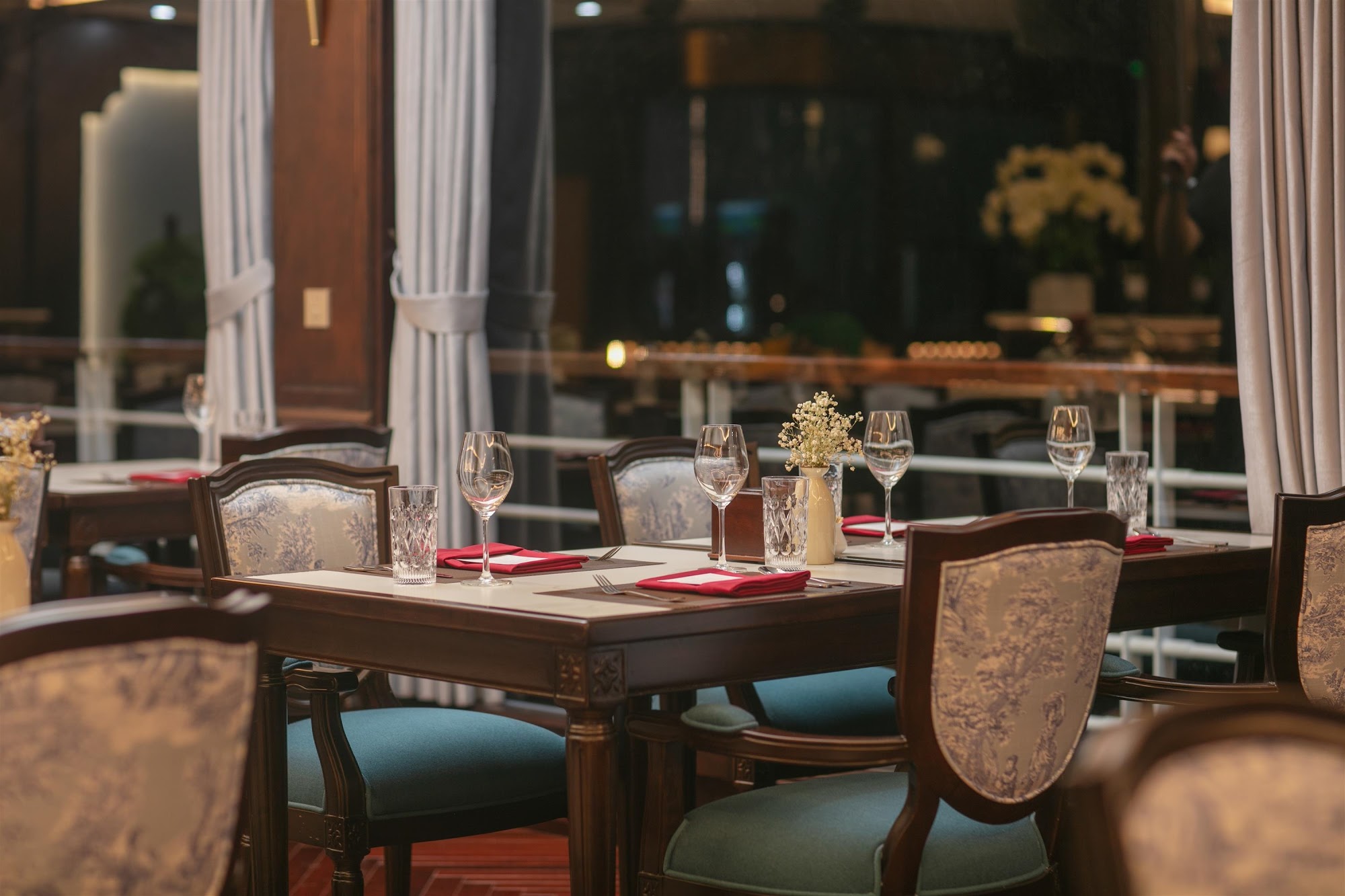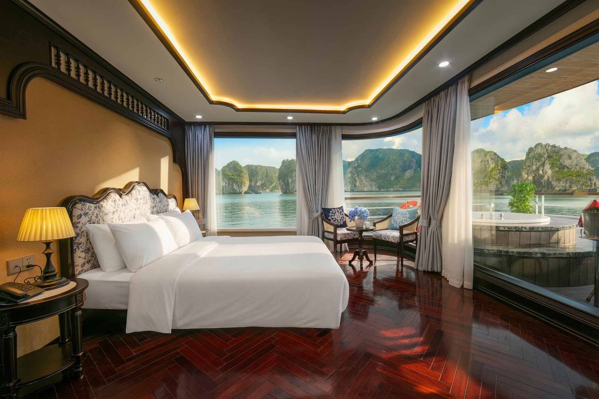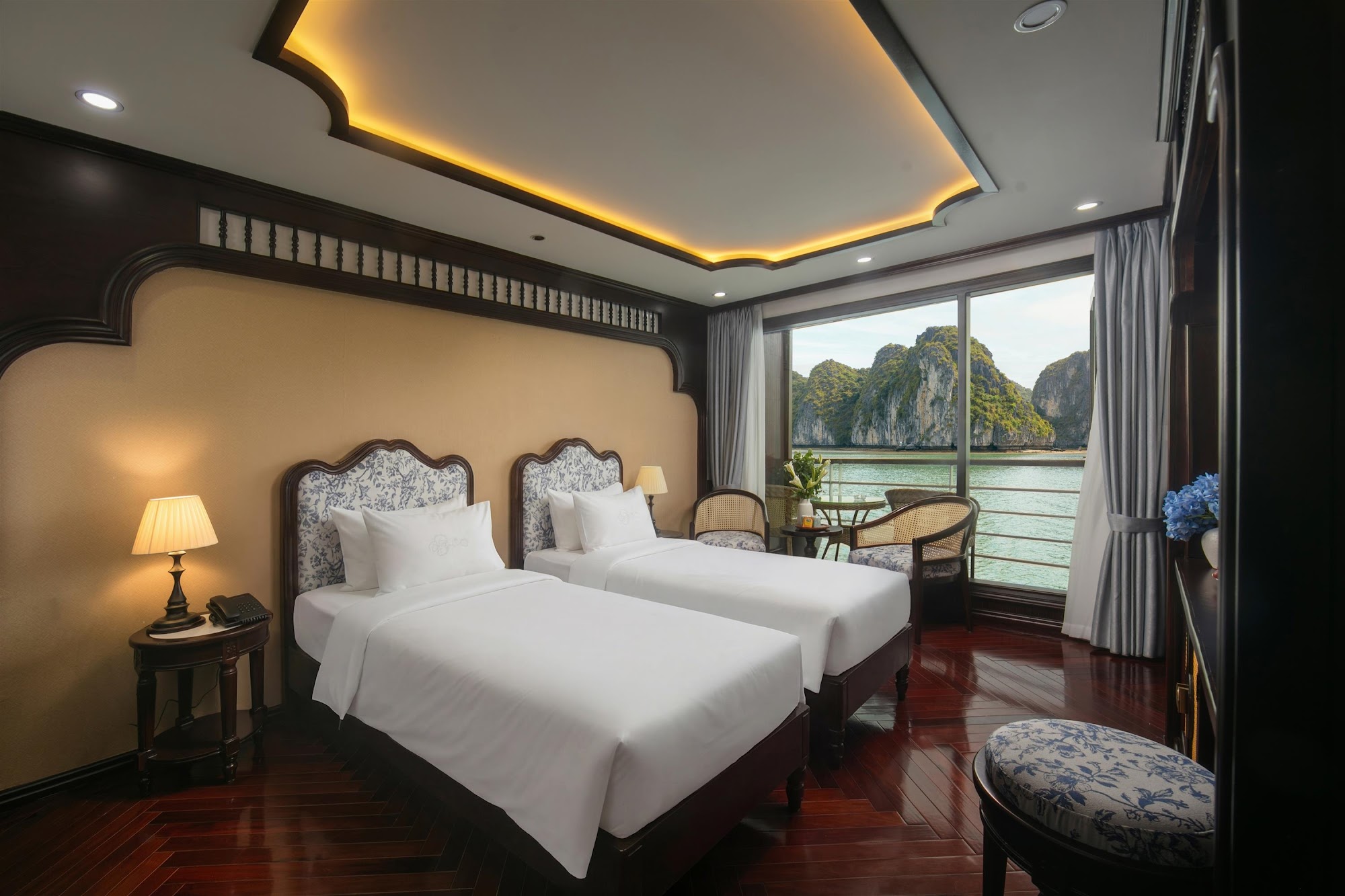Điểm nhấn của du thuyền Du Yên nằm ở thiết kế tân cổ điển Châu Âu kết hợp tinh tế phương Đông – sự giao thoa hài hòa giữa nét thanh lịch Châu Âu và cảm hứng Á Đông. Từng chi tiết đều được chế tác tỉ mỉ, mang đến một không gian vừa tinh tế vừa lôi cuốn, vừa tinh tế vừa tràn đầy cảm xúc.