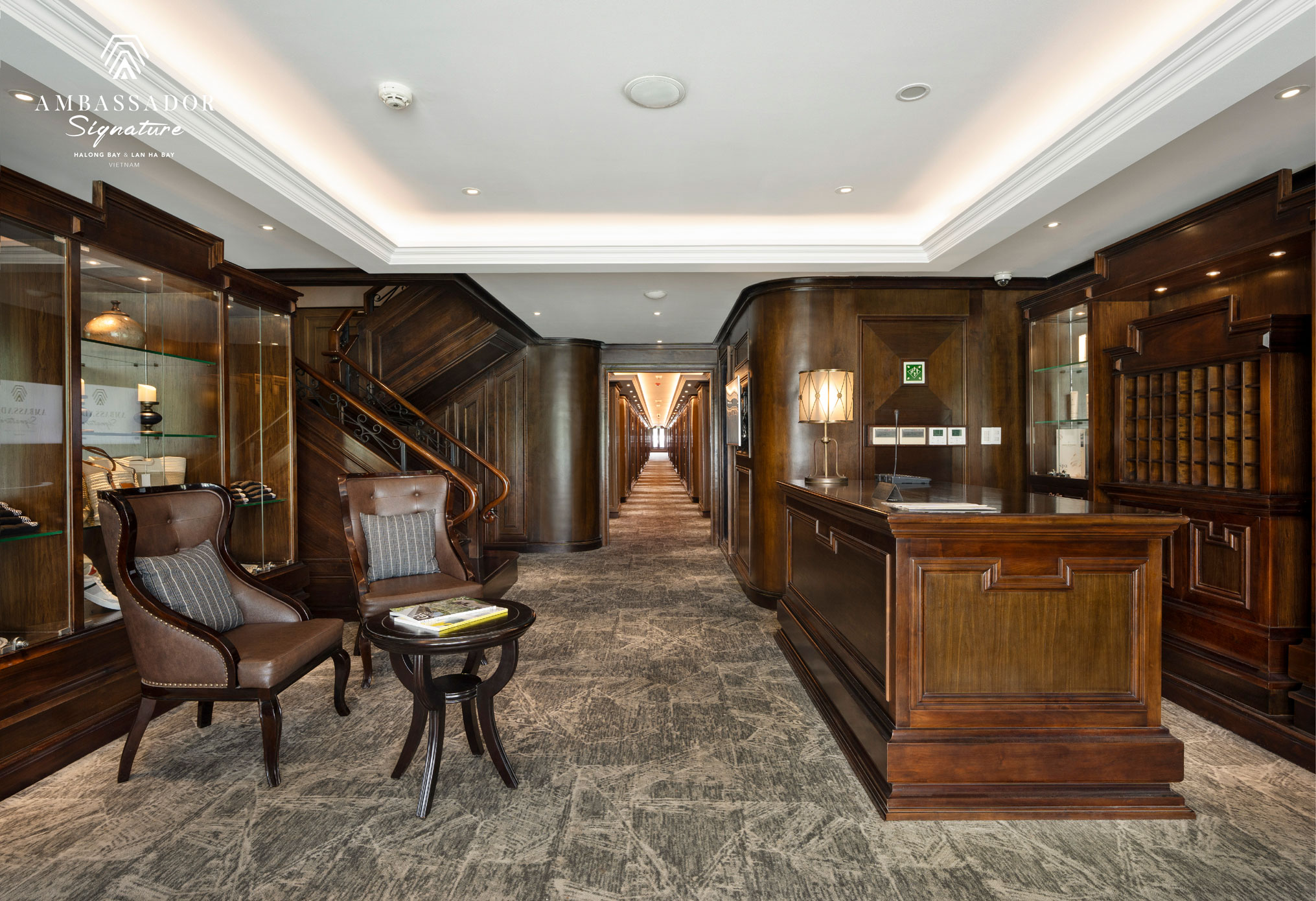 Ambassador Signature cruise có thiết kế tinh tế với 4 tầng và 1 sundeck tắm nắng, 1 nhà hàng hạng sang cùng vô số khu vực tiện ích như quầy bar, sảnh Piano, khu vực đọc sách, phòng Spa… giúp cho du khách thực sự được tận hưởng kỳ nghỉ dưỡng đỉnh cao cũng như tái tạo năng lượng theo phong cách 5 sao nơi vịnh di sản.