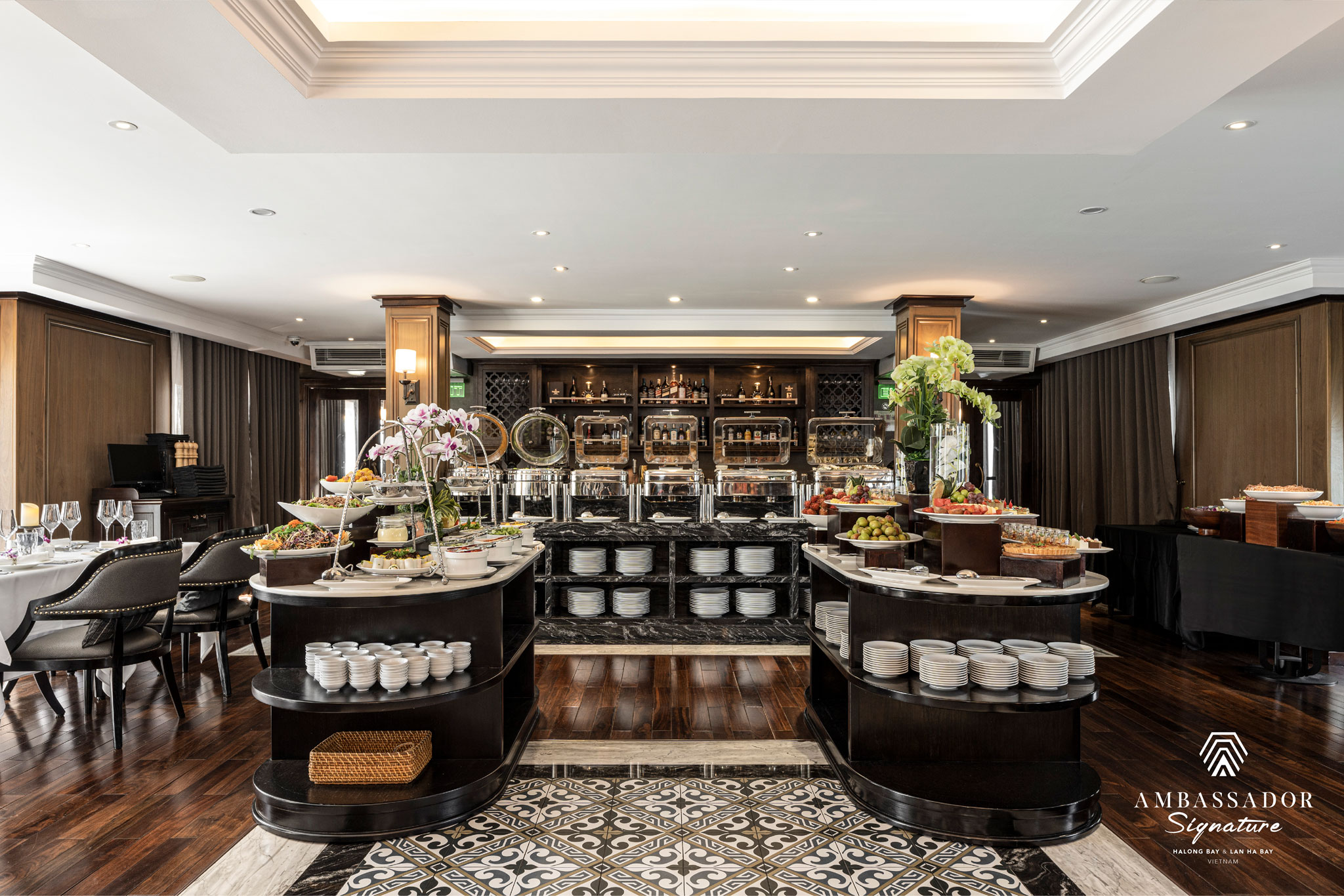 Du thuyền Ambassador Signature dẫn du khách bước vào một hành trình ẩm thực 5 sao đầy khác biệt với những điểm chạm ấn tượng, không chỉ là hương vị mà còn đến từ không gian. Từng chi tiết tại nhà hàng Ambassador được thiết kế và bày trí tinh xảo, sang trọng, mang đậm âm hưởng kiến trúc Châu Âu. Cùng những món ngon thượng hạng, nội thất, âm nhạc và phong cách phục vụ chỉn chu sẽ là gia vị hấp dẫn cho một bữa ăn trọn vẹn và thoả mãn mọi giác quan của thực khách.