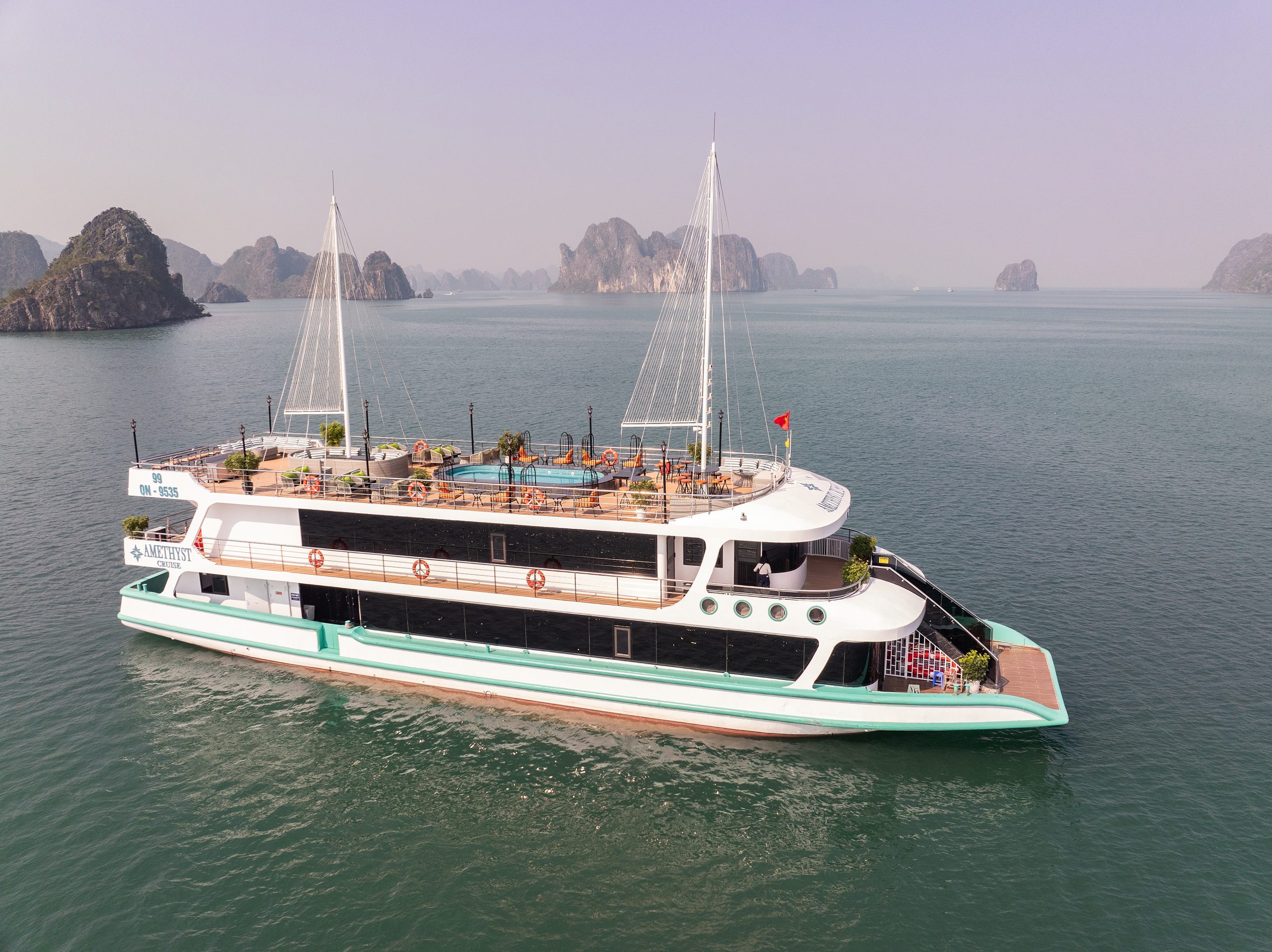 Du thuyền Amethyst Day Cruise lần đầu được ra mắt vào năm 2023 với cái tên lấy cảm hứng từ đá thạch anh tím. Ngay khi bắt đầu hạ thủy, Amethyst day cruise đã lập tức tạo được dấu ấn đậm nét với thiết kế trẻ trung, hiện đại rất có “gu” cùng dịch vụ chỉn chu chuẩn 5 sao; đồng thời cũng được xem như 1 trong những du thuyền 99 chỗ cao cấp nhất tham quan vịnh Hạ Long trong ngày.
