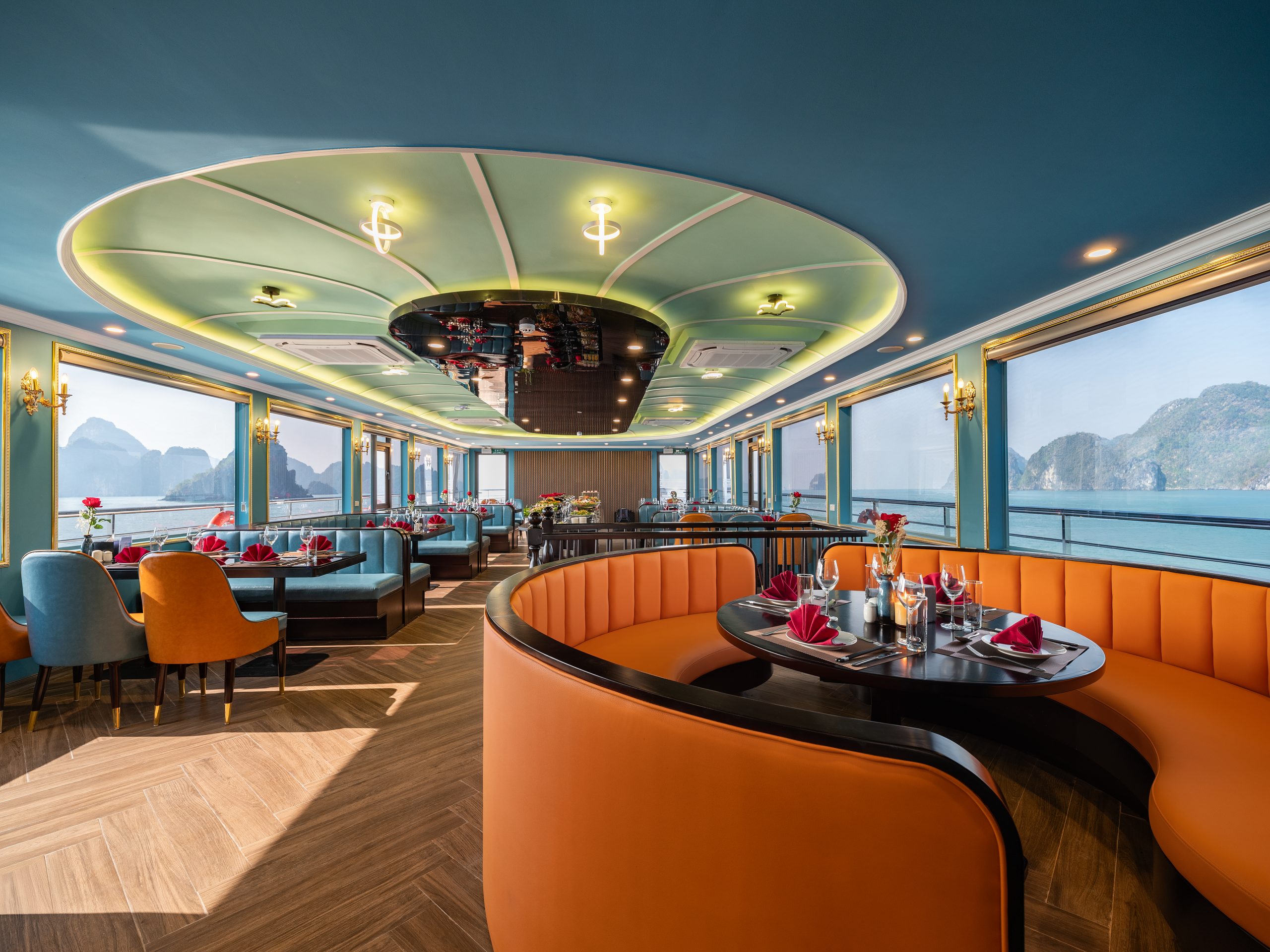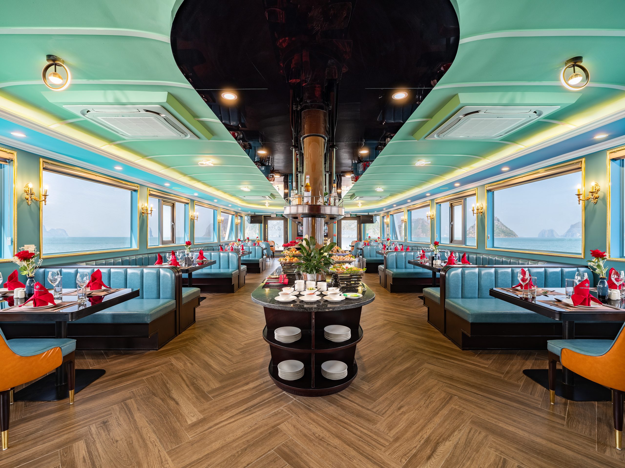 Du thuyền trong diện mạo mới có thể đón tới 135 khách trong mỗi hành trình thăm vịnh Hạ Long, không gian rộng rãi hơn hơn, được đầu tư kỹ lưỡng về mặt thẩm mỹ.