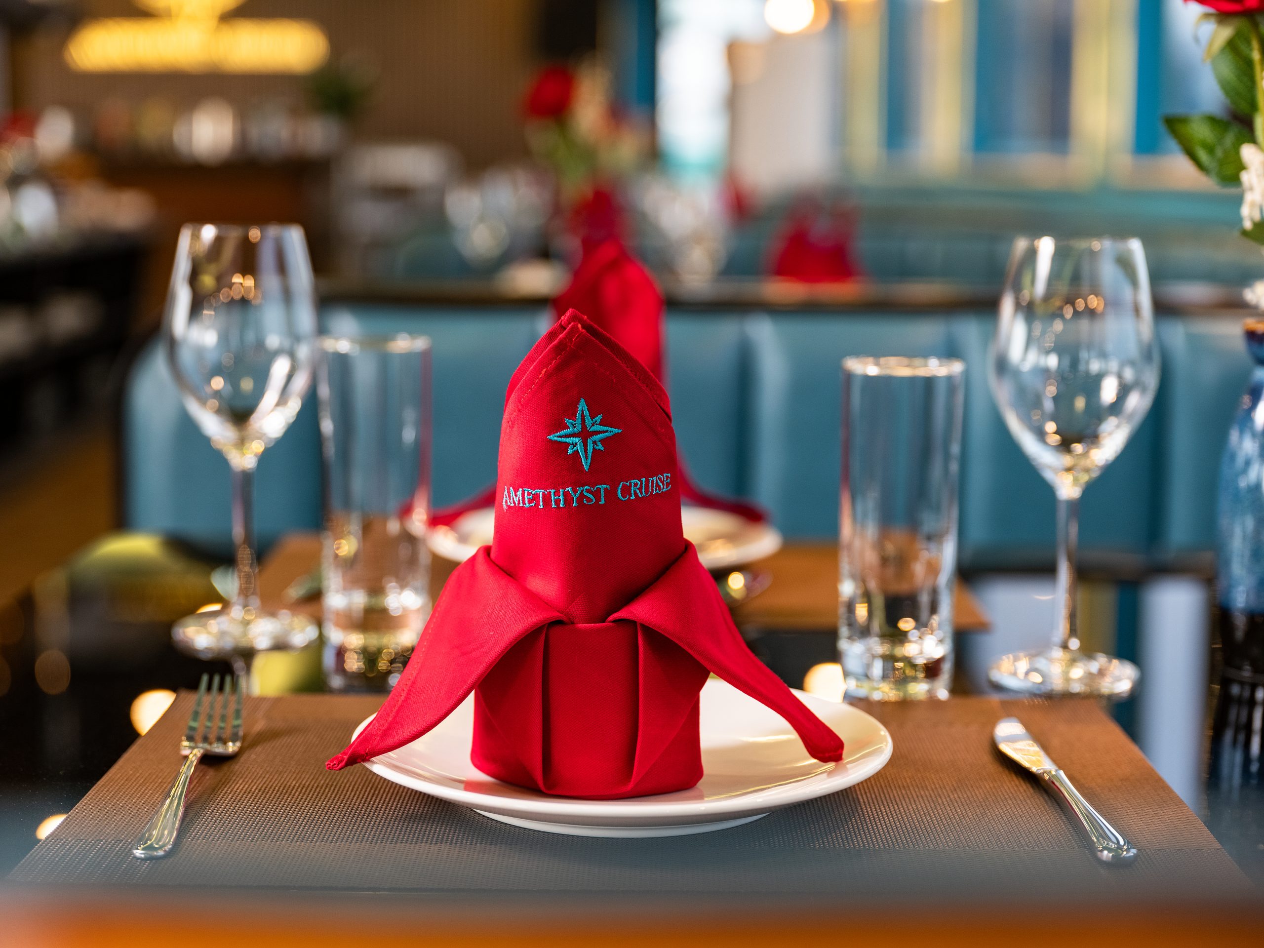 Một điểm nhất ấn tượng tạo nên chuyến hải trình hoàn hảo trên du thuyền Amethyst Day Cruise là bữa trưa buffet đa dạng các món Á -Âu, hải sản địa phương tươi mới được chế biến cầu kì bởi các đầu bếp trứ danh trên du thuyền. Giữa không gian nhà hàng sang trọng bao quanh là Vịnh Hạ Long xinh đẹp với phong cách phục vụ tinh tế, nâng niu từng trải nghiệm khách hàng, lúc này bữa trưa không chỉ là một bữa ăn, mà đã trở thành một hành trình ẩm thực phong phú, khơi dậy mọi giác quan.