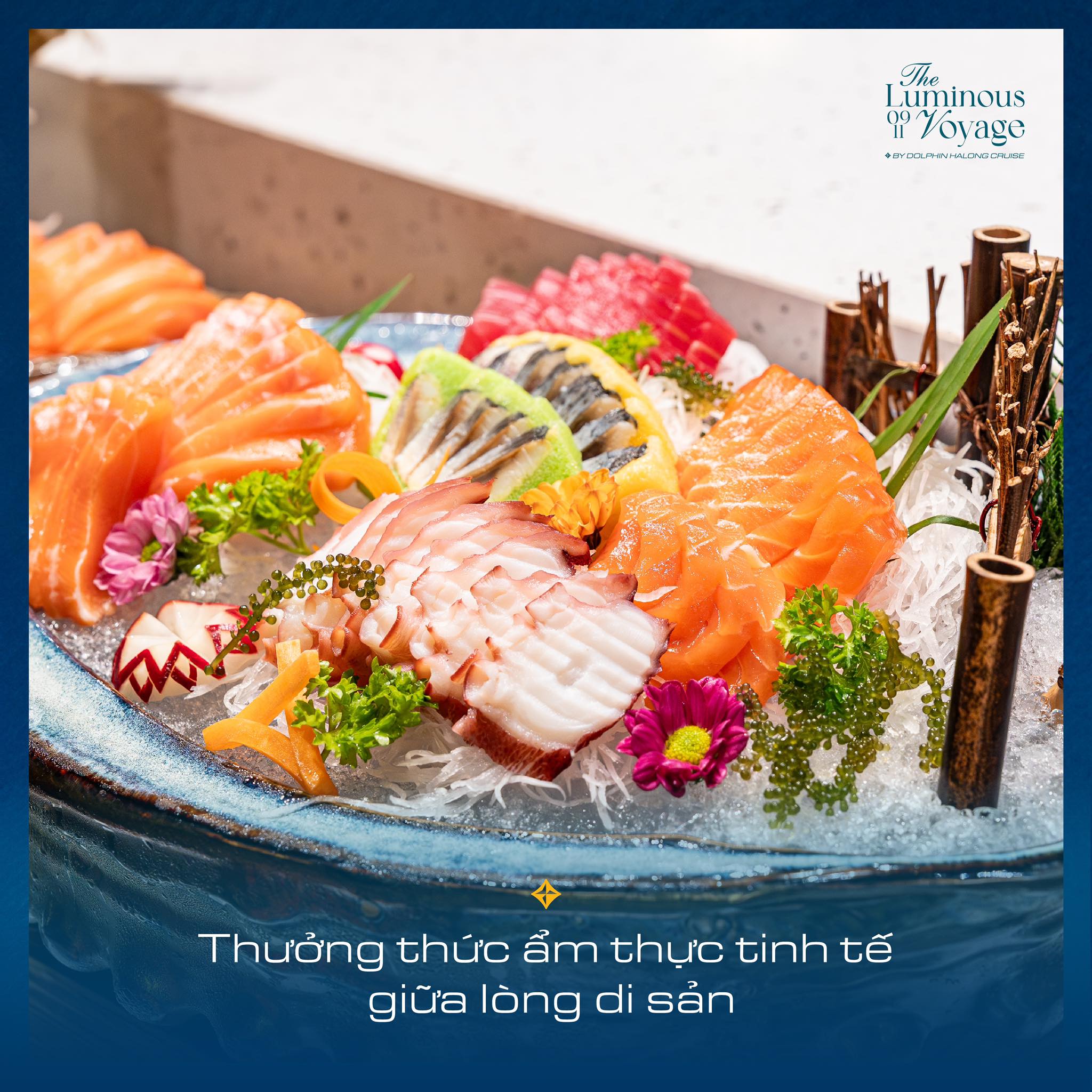 Nuông chiều vị giác - Tận hưởng tinh hoa ẩm thực fusion tại Dolphin Halong cruise. Đến với Dolphin Halong cruise, mỗi bữa tiệc là một hành trình khám phá nghệ thuật ẩm thực fusion độc đáo. Từ ẩm thực Á – Âu tinh tuyển đến sự pha trộn sáng tạo của hương vị vùng miền, từng món ăn đều được chế tác tỉ mỉ, vừa tinh tế về hương vị, vừa độc đáo trong cách trình bày.
