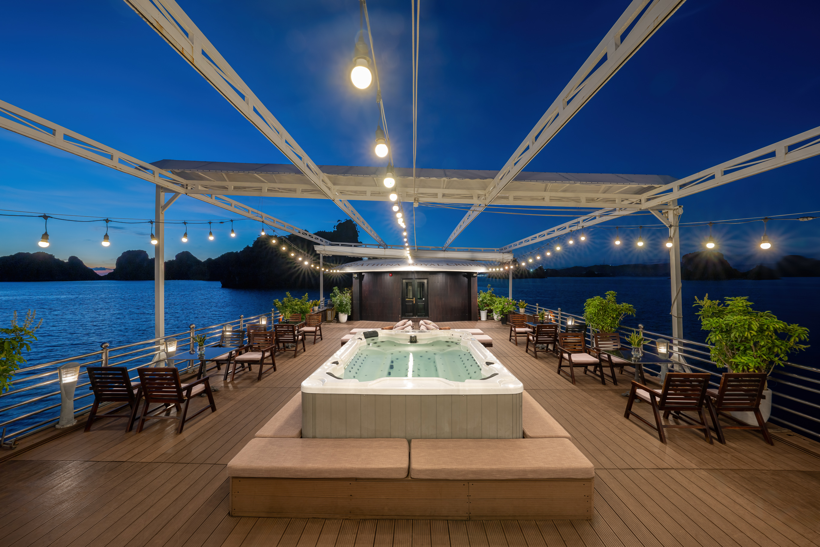 - Sundeck rộng với jacuzzi ngoài trời – nơi ngắm trọn vẻ đẹp Vịnh Hạ Long.