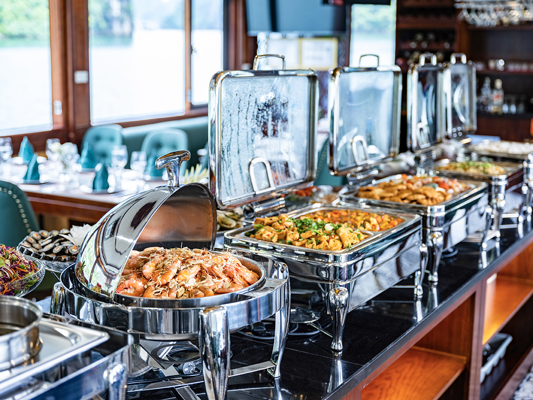 - Bữa ăn trưa buffet cao cấp trên tàu.