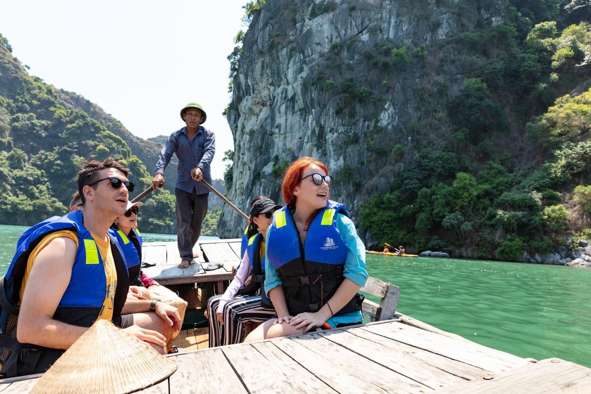 Được lựa chọn là một trong những địa điểm chèo thuyền kayak có tầm nhìn ngoạn mục nhất thế giới, thế nên mong bạn đừng bỏ lỡ cơ hội khua nhẹ mái chèo kayak trôi nhẹ trên mặt nước phẳng lặng trên vịnh Lan Hạ – vịnh Hạ Long.