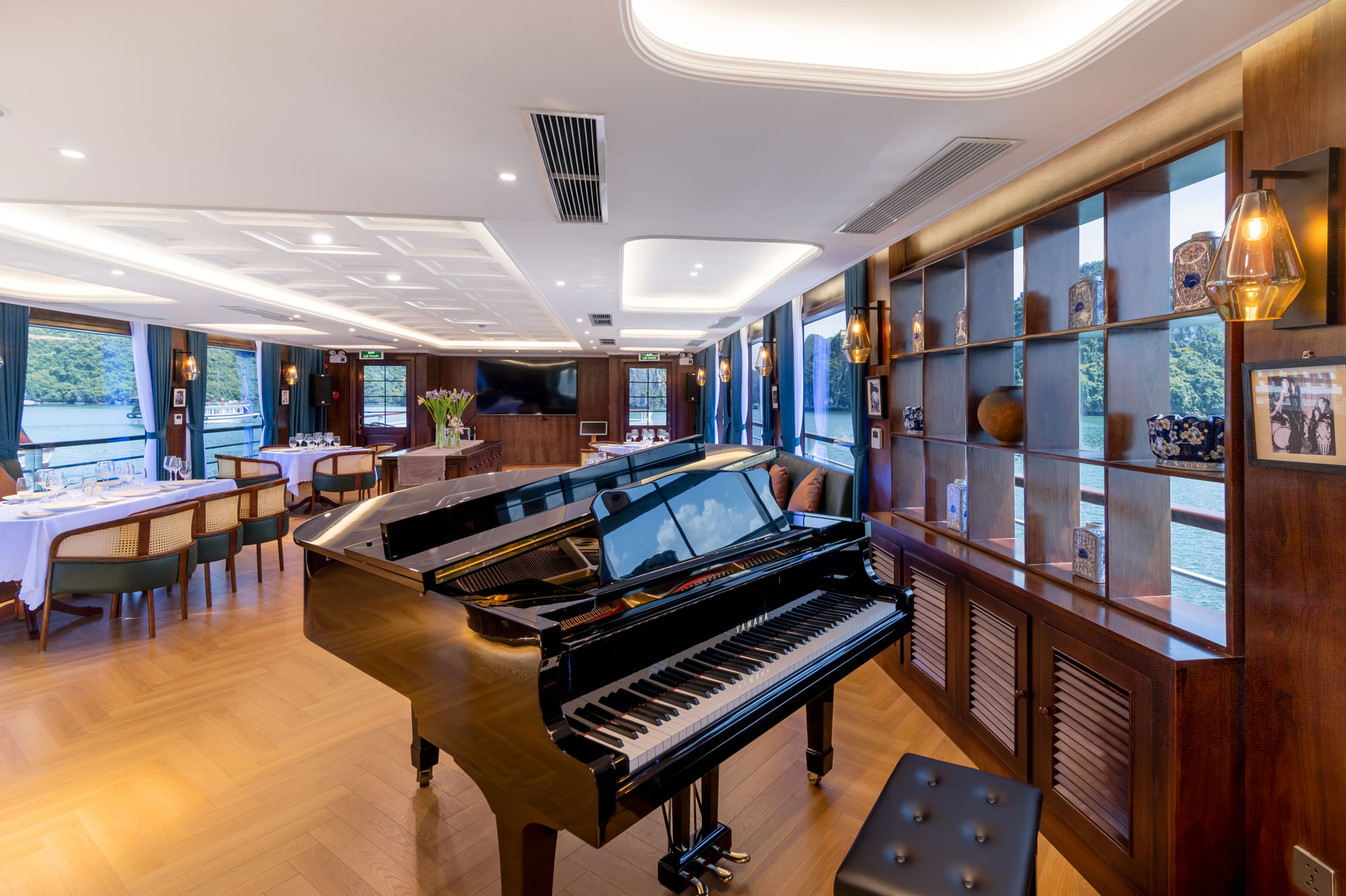 - Sở hữu nhiều không gian ngoài trời và không gian mở như Sky Lounge trên Sundeck, khu vực sục Jacuzzi với 360 độ view toàn bộ vịnh Hạ Long… đem tới cho du khách những trải nghiệm cực “chill” ngay trên chính du thuyền