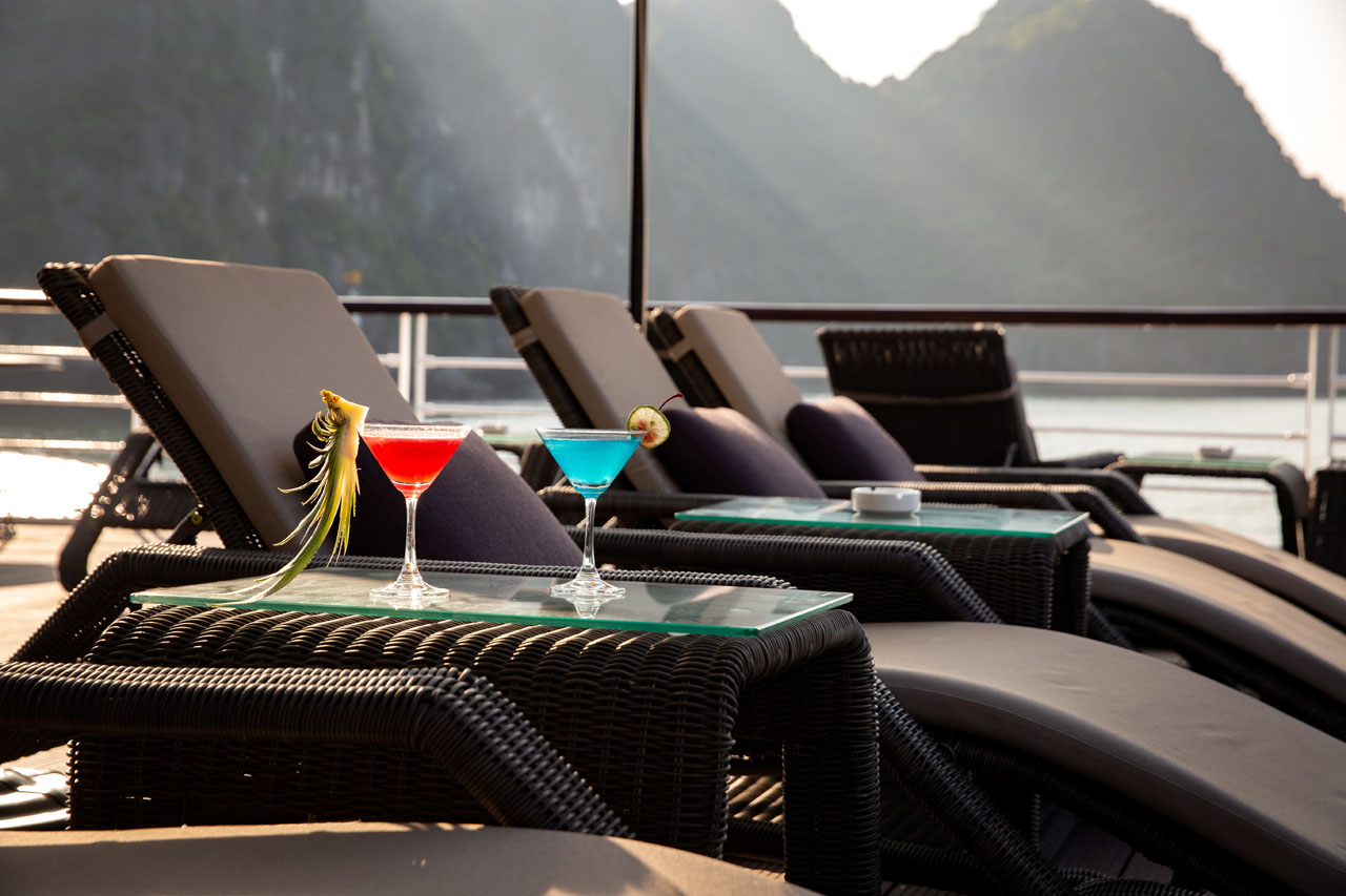 – Quý khách cũng có thể lựa chọn hoạt động ngâm mình trong bồn sục Zacuzzi lớn tại phía mũi của du thuyền là trải nghiệm đặc biệt khác biệt.