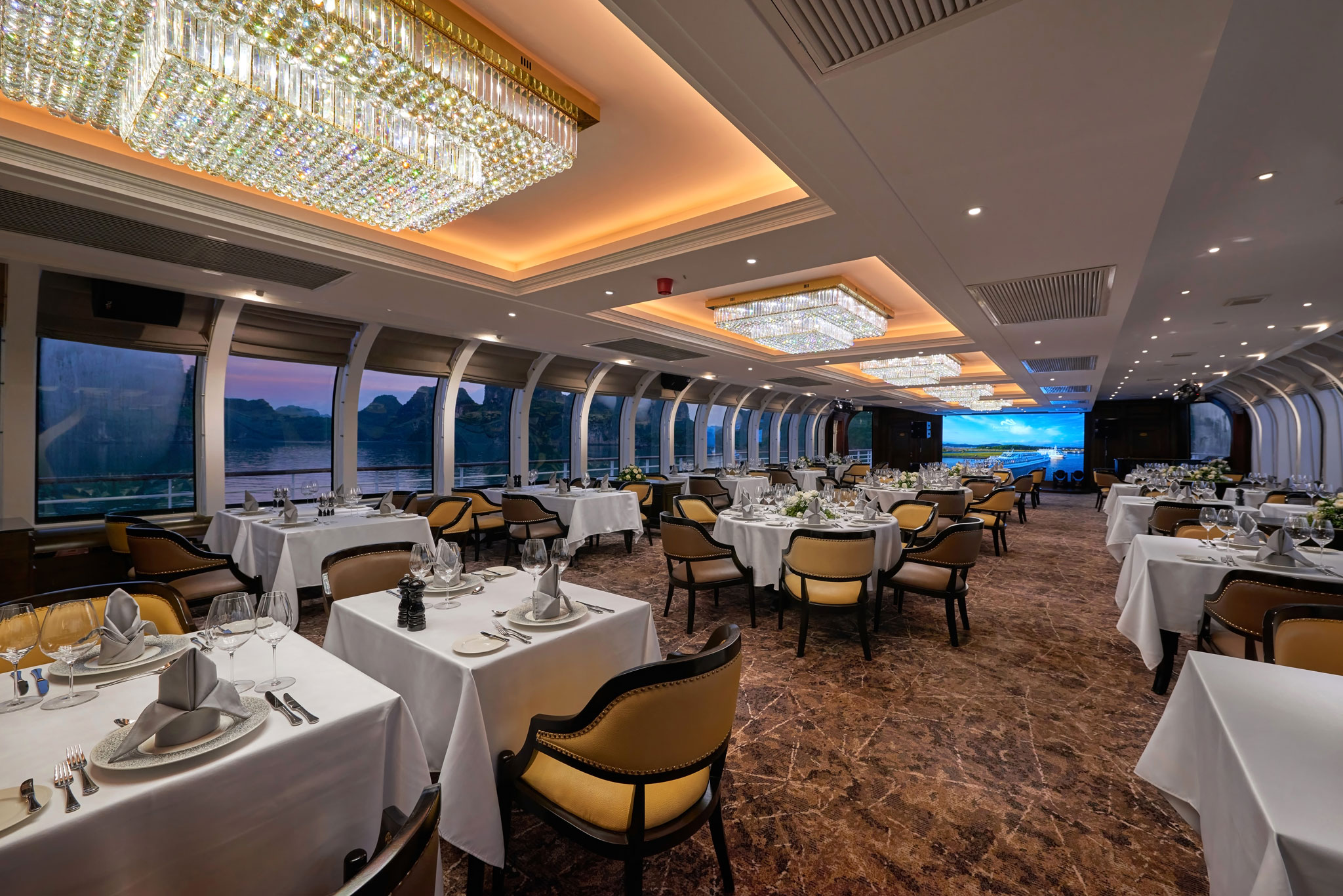 Lịch trình có thể thay đổi mà không thông báo trước. Khu vực nhà hàng/ bar luôn có hỗ trợ wifi, tuy nhiên kết nối internet có thể bị gián đoạn do ảnh hưởng của khu vực địa lý trong vịnh.