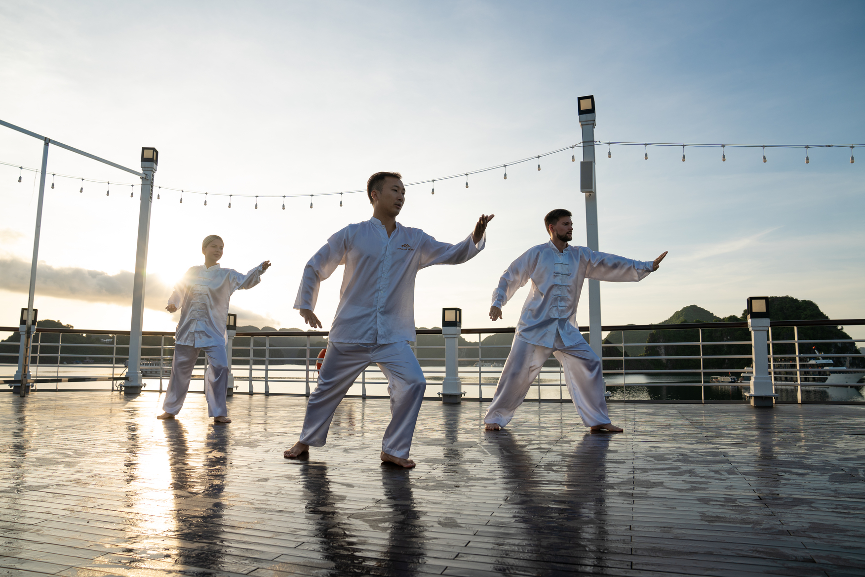 Ngoài các hoạt động tham quan, hành trình 2 ngày 1 đêm còn trở nên phong phú với: tiệc trà chiều, lớp học nấu ăn, nghe nhạc live sau bữa tối, câu mực đêm, tập thái cực quyền đón bình minh trên vịnh. Tất cả mang đến một hành trình thư giãn, nhẹ nhàng nhưng không hề nhàm chán.