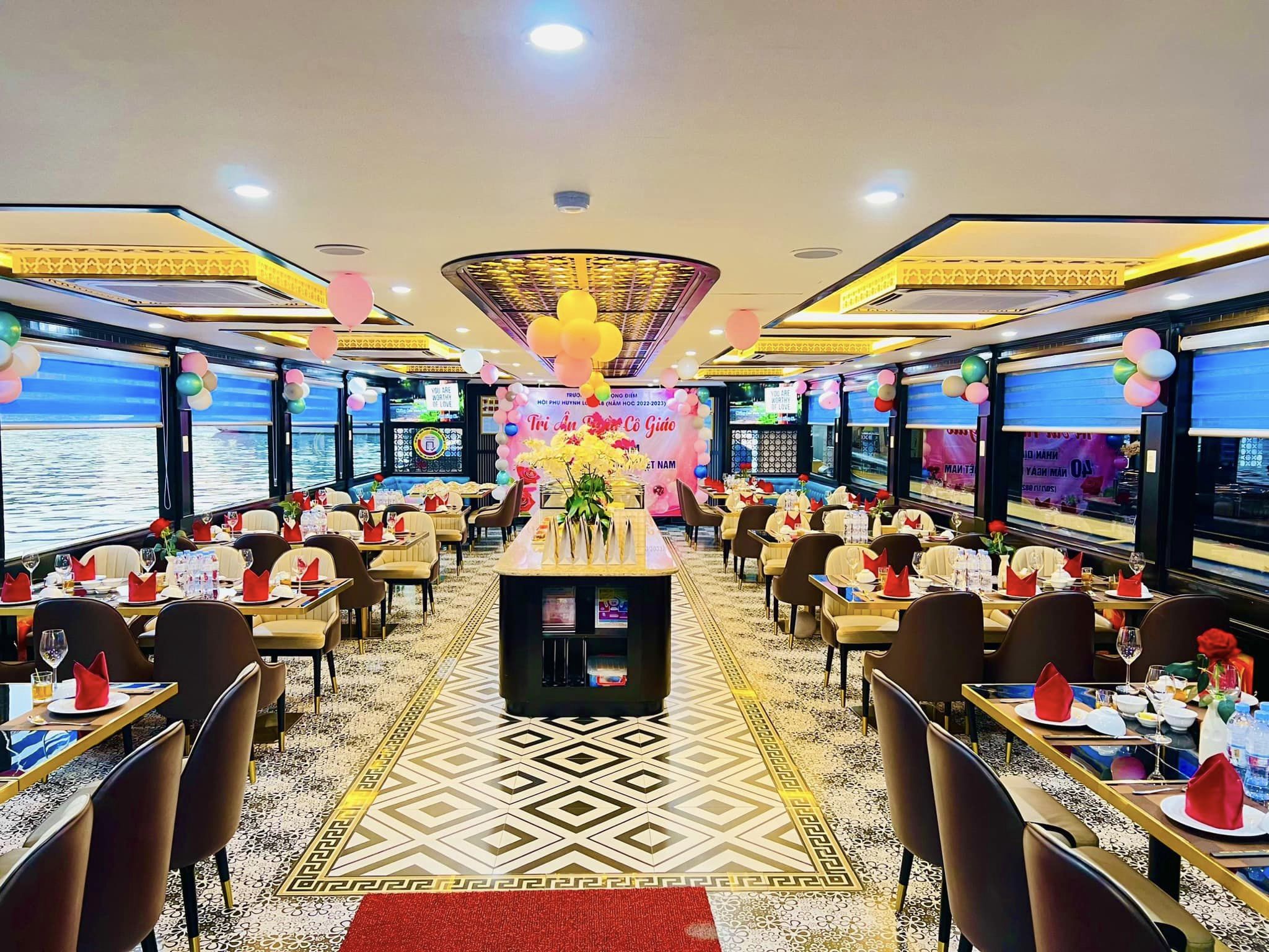 - Cơ sở vật chất hiện đại, boong tàu sang trọng, điều hòa, Tivi, Internet (Wifi) trong khu vực nhà hàng.