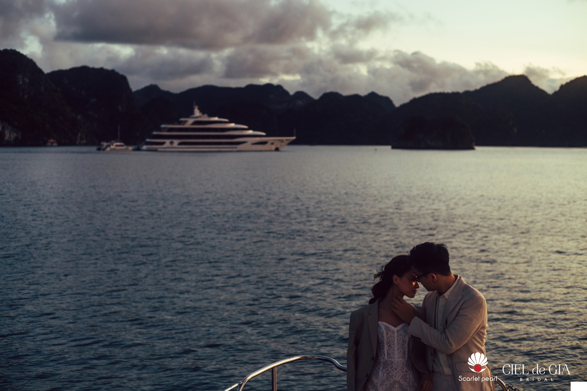 – Thêm vào đó, sắc trắng tinh khôi lại làm du thuyền thêm phần dịu dàng hơn cả, tựa như vỏ trai trắng mịn ôm trọn viên ngọc trai đỏ.