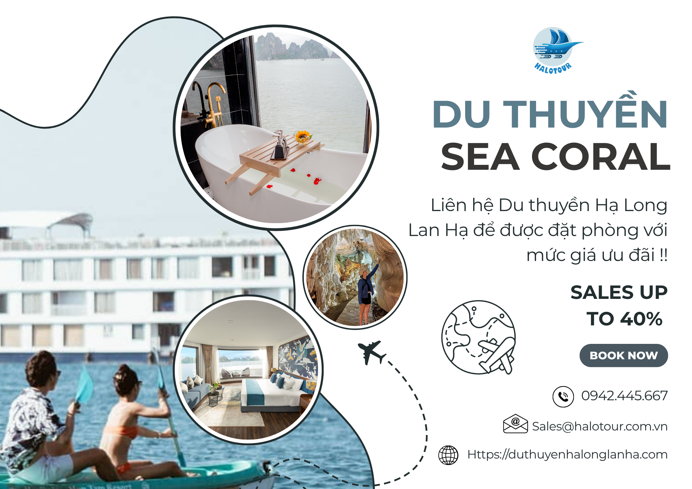 Halotour hiện đang là đối tác chiến lược của du thuyền Sea Coral với giá cực kỳ ưu đãi so với giá niêm yết. Liên hệ ngay Du thuyền Hạ Long – Lan Hạ để được tư vấn mọi thắc mắc 24/7 và hỗ trợ đặt phòng giá ưu đãi nhé!