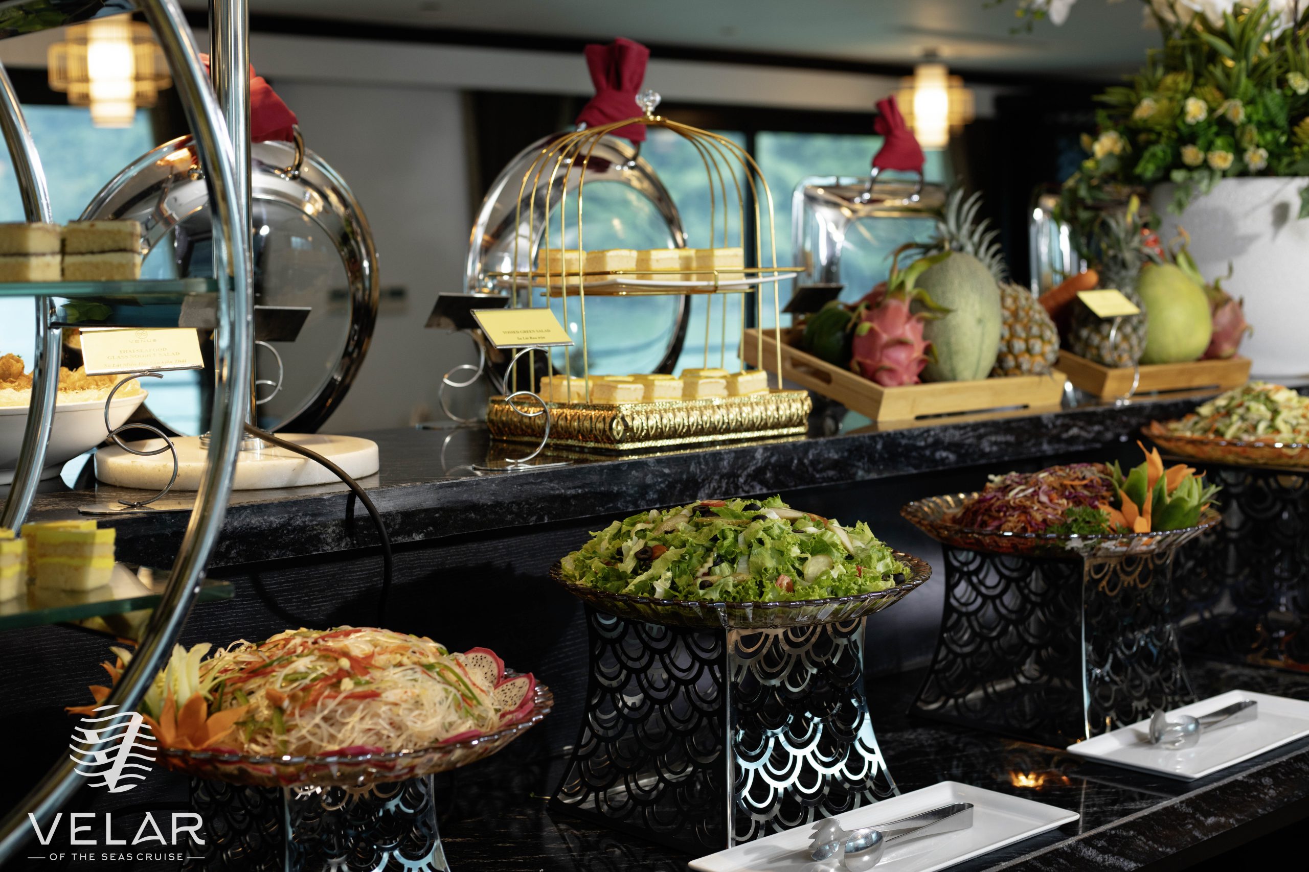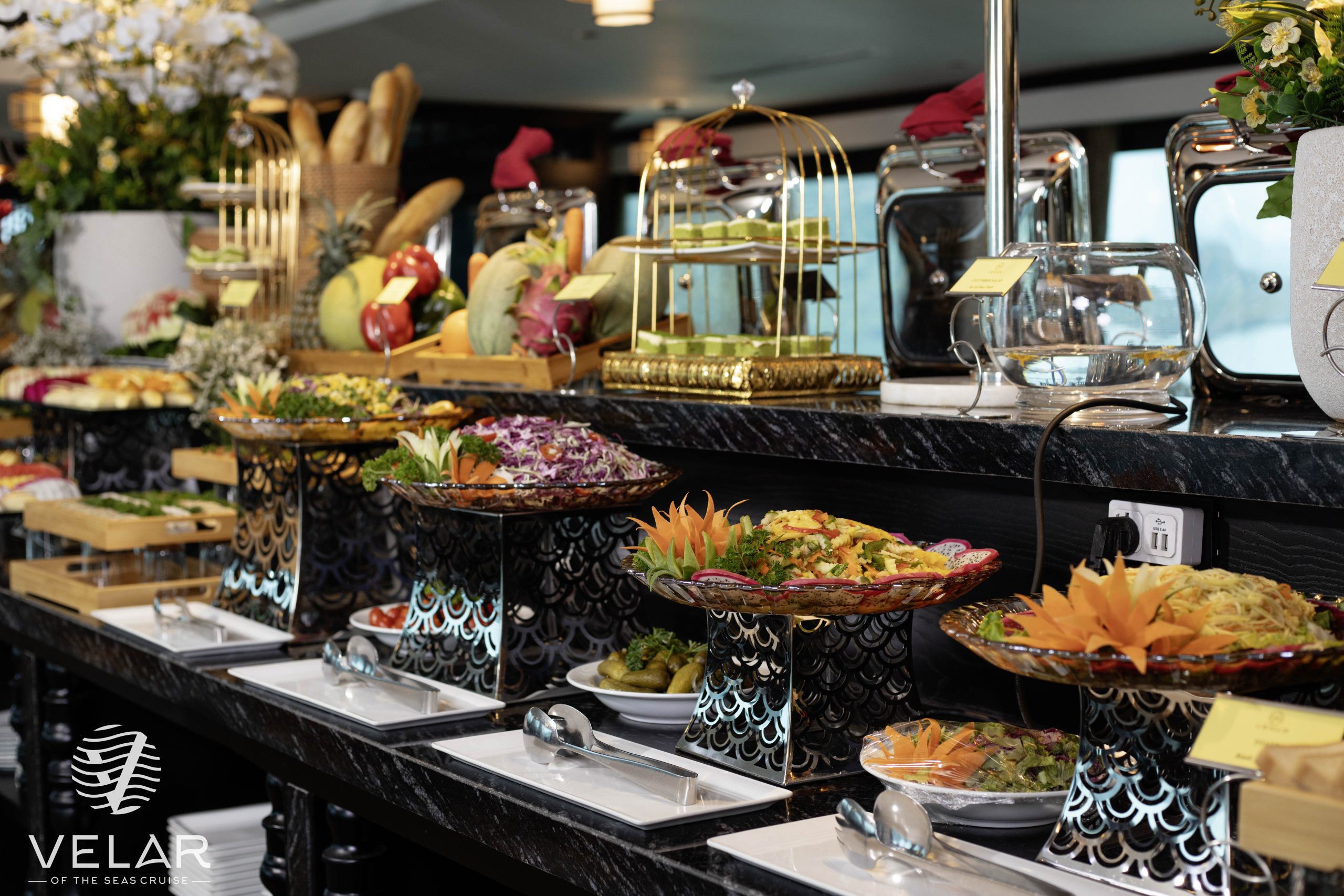 Từ hương vị quen thuộc của các món Á, đến những món Âu tinh xảo bắt mắt, khiến du khách phải trầm trồ trước những món ăn tựa như những tác phẩm nghệ thuật được bài trí tỉ mỉ. Nguyên liệu được chế biến xuất sắc, đặc biệt là những món hải sản đặc trưng của Vịnh Hạ Long, du khách sẽ khó thể nào quên được chuyến hành trình Velar of the sea, đúng nghĩa hành trình trở về biển cả.