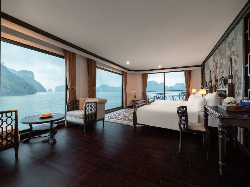 • Tầng 3 với 9 phòng Senior Suite có giá tốt nhất và 2 phòng Premier Suite với view đẹp hơn, gồm không gian riêng tư ở đuôi tàu, thiết kế được đầu tư tỉ mỉ theo phong cách quý tộc Châu Âu, dành cho khách hàng doanh nhân có yêu cầu cao, mang đến trải nhiệm tốt nhất cho du khách.