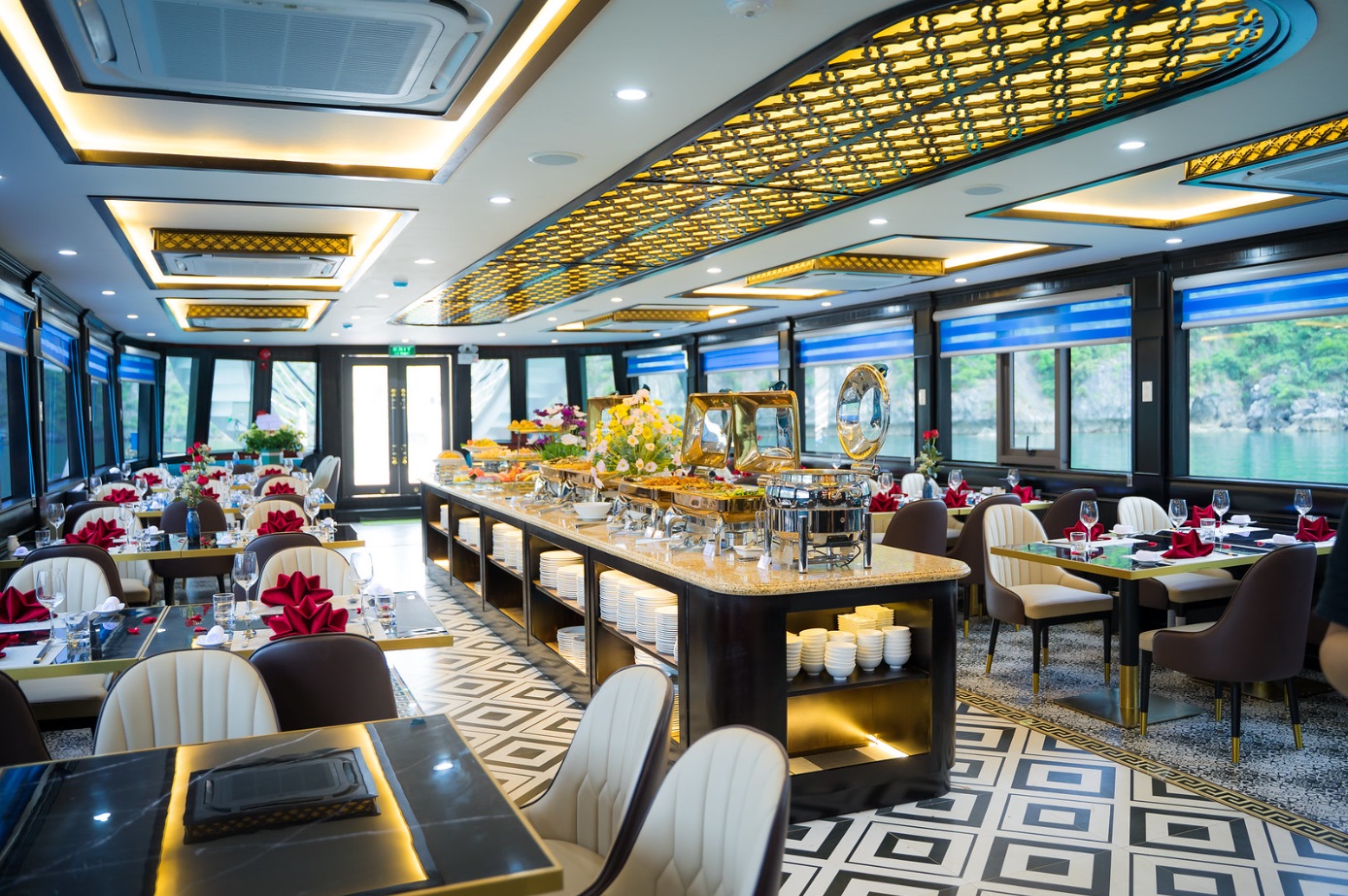 - Cơ sở vật chất hiện đại, boong tàu sang trọng, điều hòa, Tivi, Internet (Wifi) trong khu vực nhà hàng.